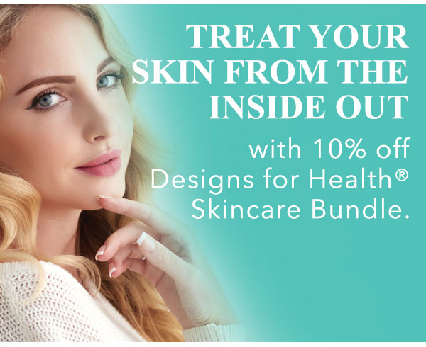 Designs for Health® skincare bundles (H-S-N Complete™, OmegAvail™ Hi-Po, and Whole Body Collagen) are 10% off during July! *Bundled price is first-time purchase only. Special cannot be combined with any other special offers. Expires 7/31/22